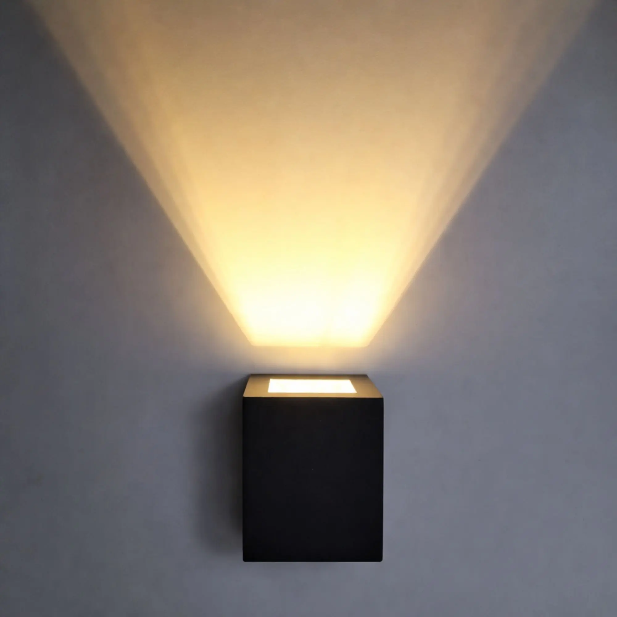 Alto: 100 mm; Ancho: 80 mm; Profundidad: 95 mm; Zócalo: G9; Apto lámpara: BIPIN LED; Material: chapa al carbono 1 mm y vidrio transparente 4 mm; Acabado: microtexturado semi mate; Colocación: Pared Exterior – Interior.