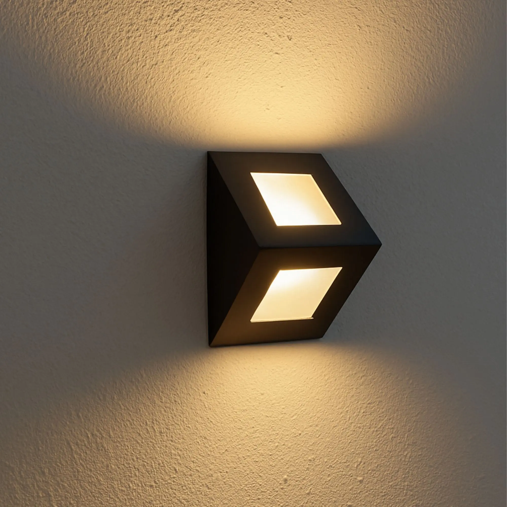 Alto: 120 mm; Ancho: 95 mm; Profundidad: 100 mm; Zócalo: G9; Apto lámpara: BIPIN LED; Color: Negro / Blanco / Gris; Material: chapa al carbono 1 mm y vidrio transparente 4 mm; Acabado: microtexturado; Colocación: Pared Exterior – Interior.