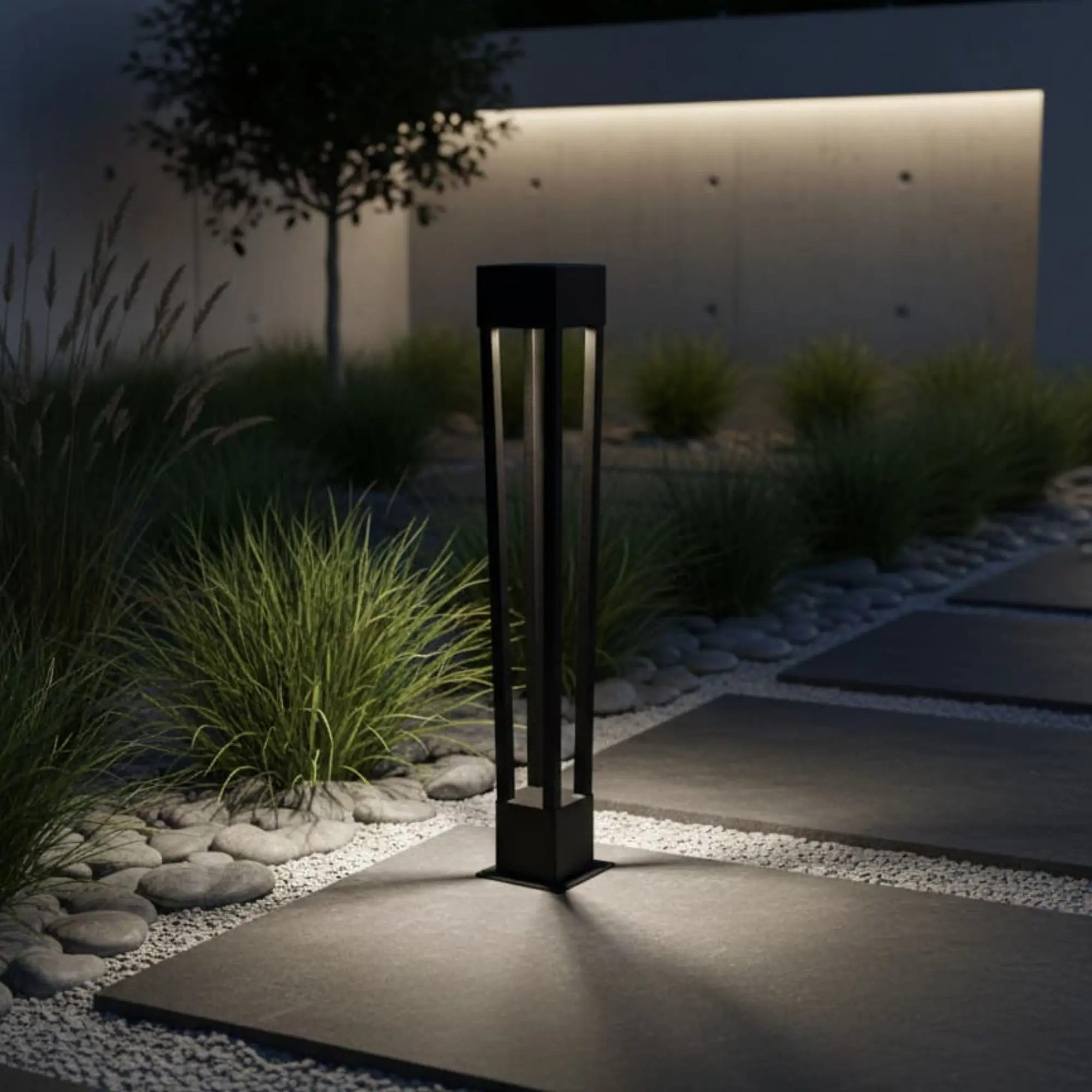 Alto: 800 mm; Base Piso: 140×140 mm; Zócalo: GZ10; Material: chapa al carbono 1.25mm; Colocación: Piso Exterior.